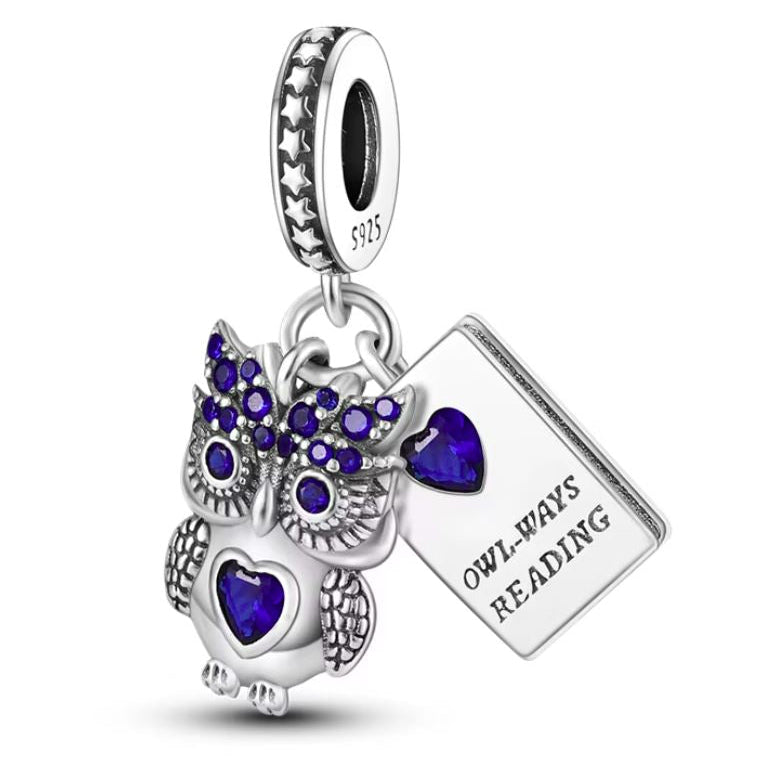 Conta em Prata 925, Coruja Lendo com Zircónias Azuis