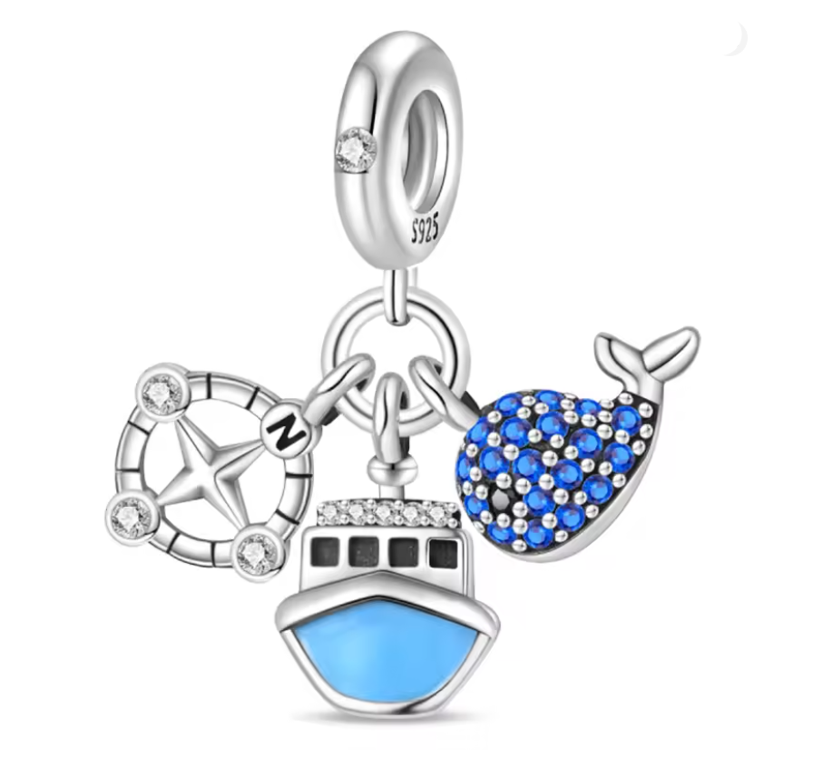 - Barco/Navio: Um pequeno barco de cruzeiro ou ferry com uma janela de esmalte azul e pedras de zircónia na parte superior.