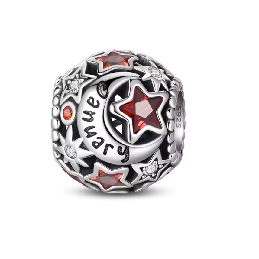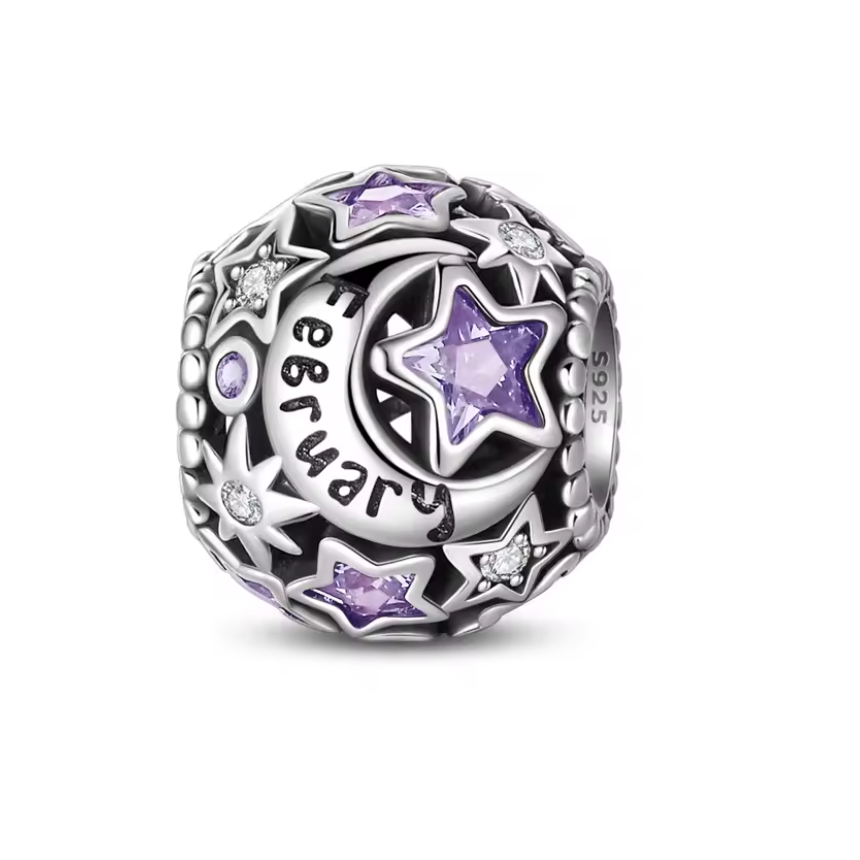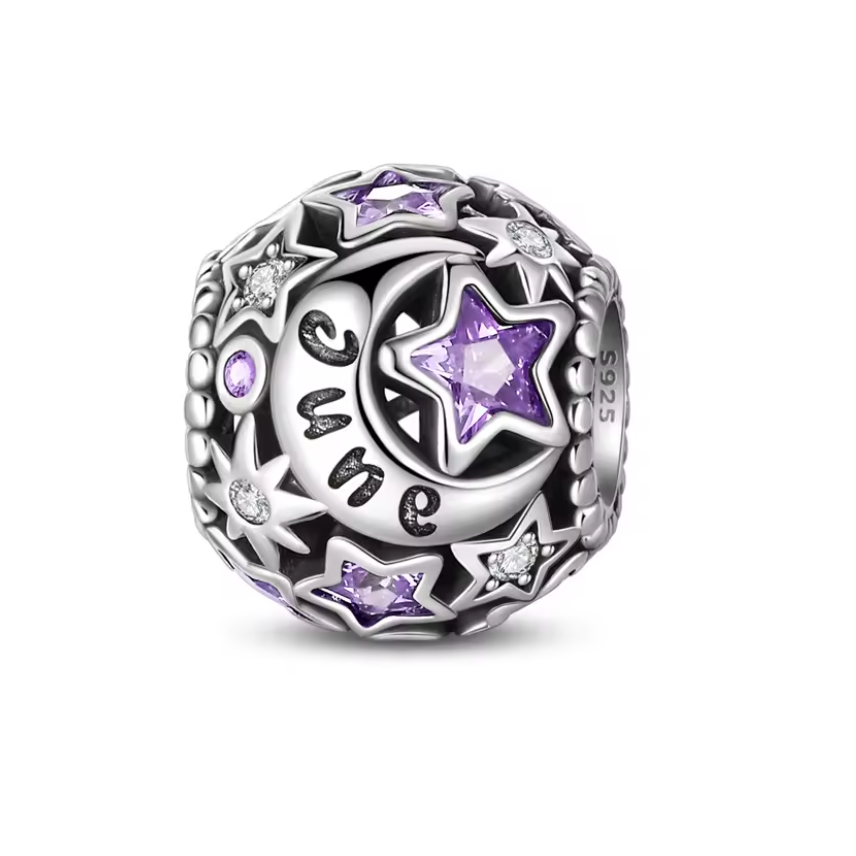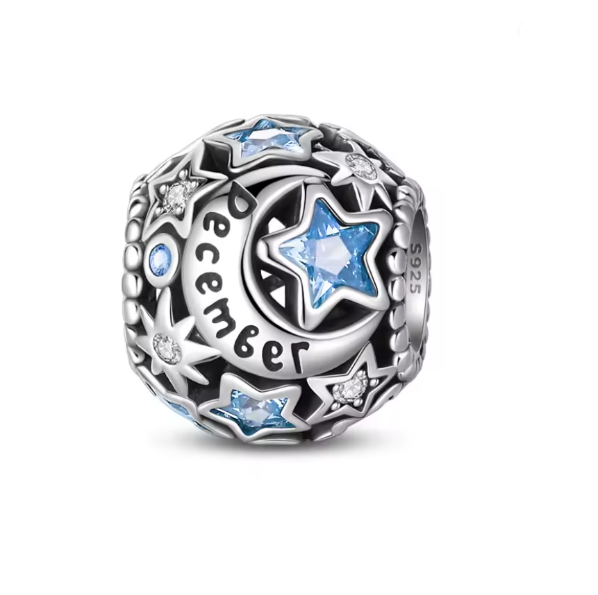 Conta em Prata 925,Estrela e Lua do Mês de Aniversário.