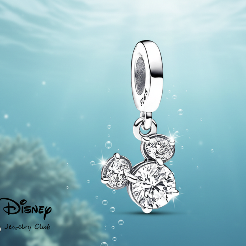 - Composição das Pedras: Apresenta três zircónias cúbicas transparentes de corte brilhante, estrategicamente posicionadas para formar o rosto e as orelhas do Mickey Mouse.