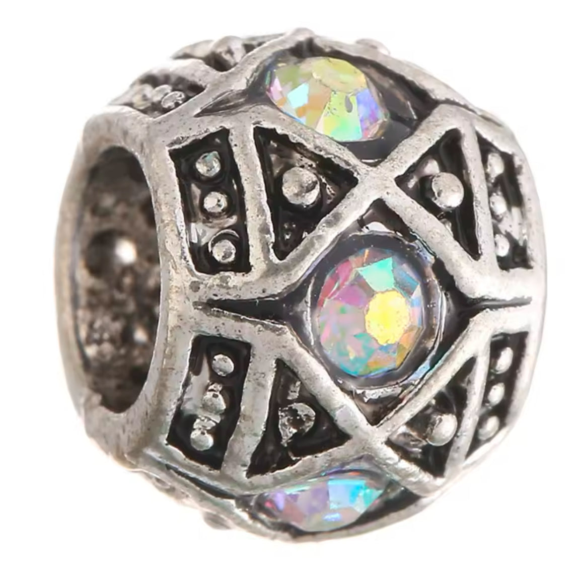 Transporte a beleza da natureza para a sua joalharia com a Conta Redonda Herbário Brilhante. Esta conta com revestimento de prata velha e é composta por zircónias coloridas e cria um formato esférico.
