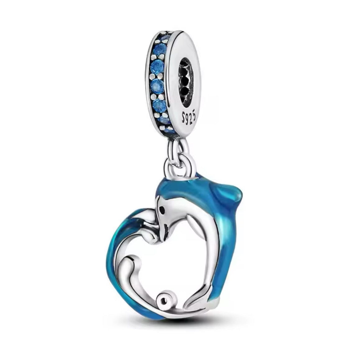 Conta Pandora Golfinho e Onda que forma um Coração em Prata 925.