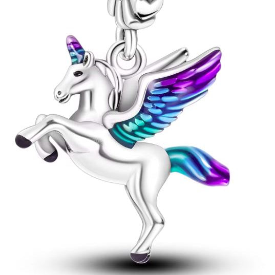 Conta Pandora Unicórnio em Prata 925 com Asas Coloridas.