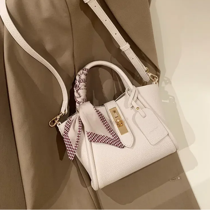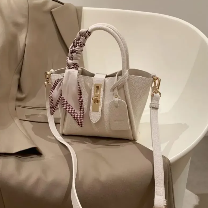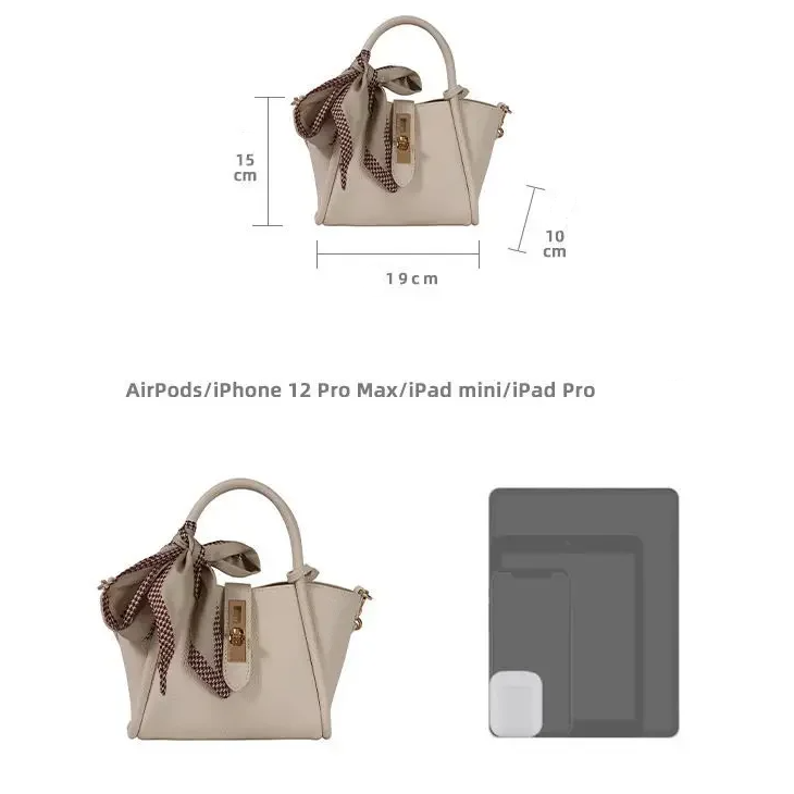 Mala de Senhora em Couro Pu com Laço de Cetim , Bege.
