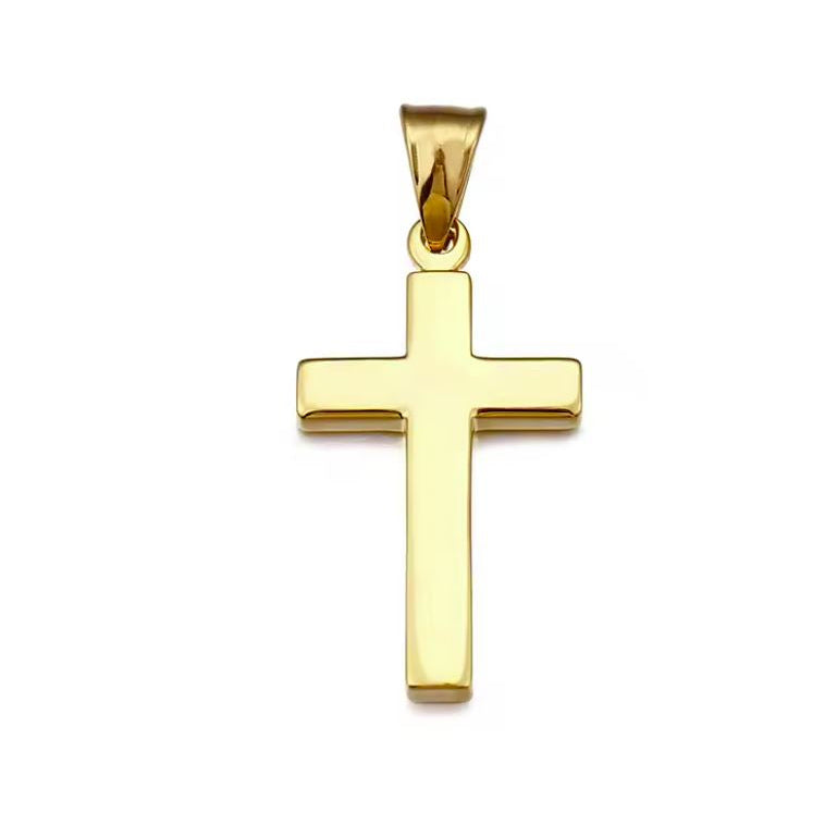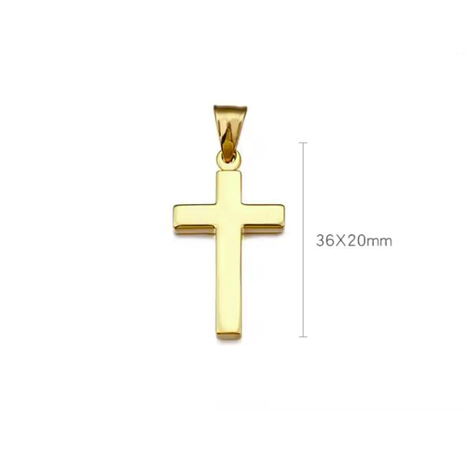 Pendente Cruz em Aço Inoxidável, na Cor Ouro.