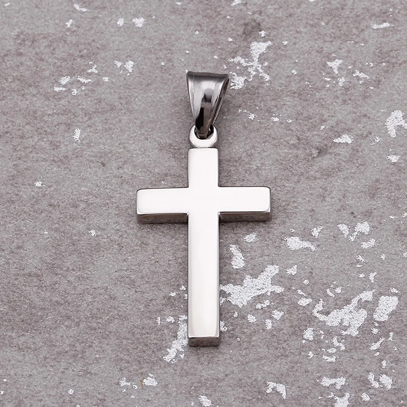 Pingente Cruz para mulheres ou homens em aço inoxidável polido à prova d'água.