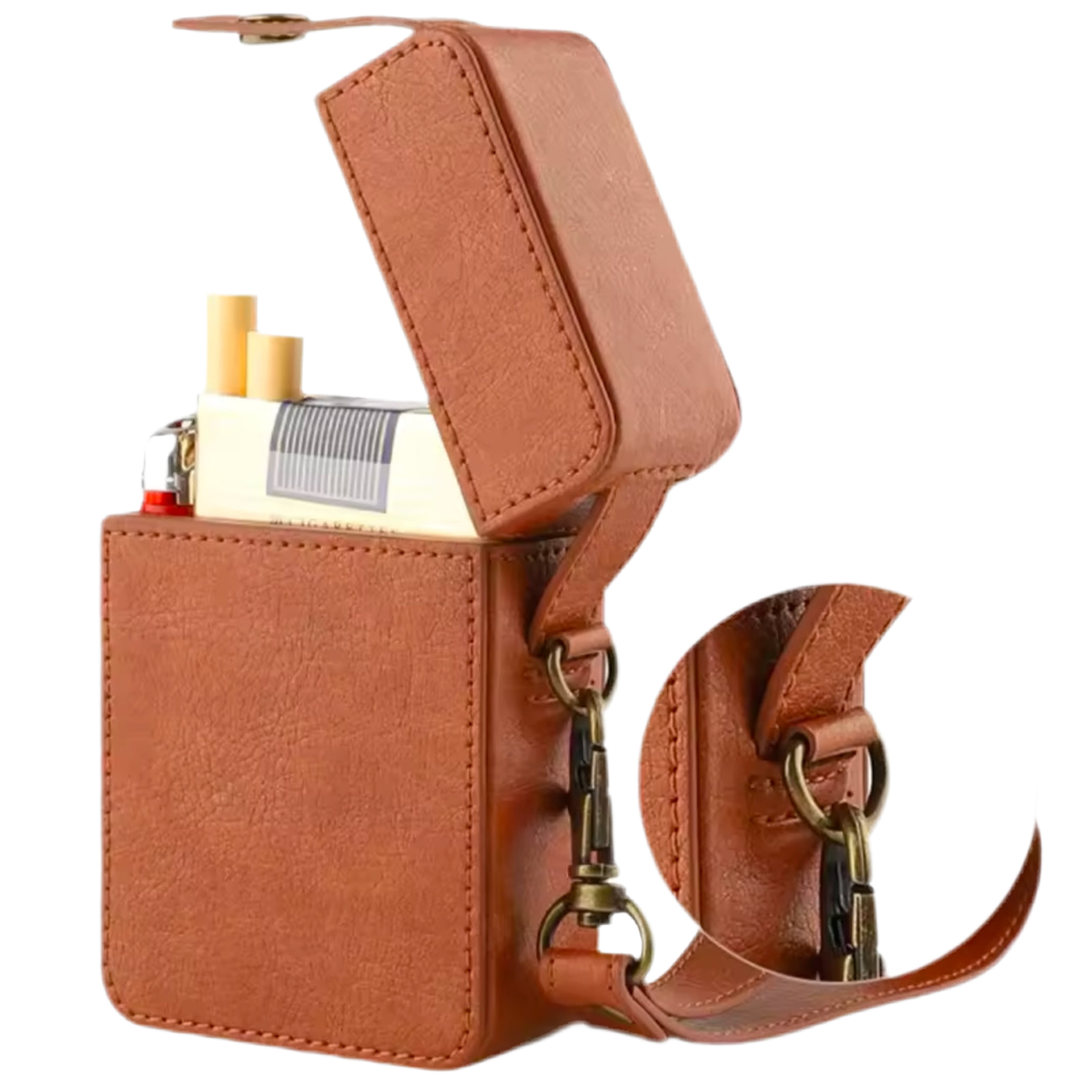Porta-Cigarros e Isqueiro em Couro Genuíno