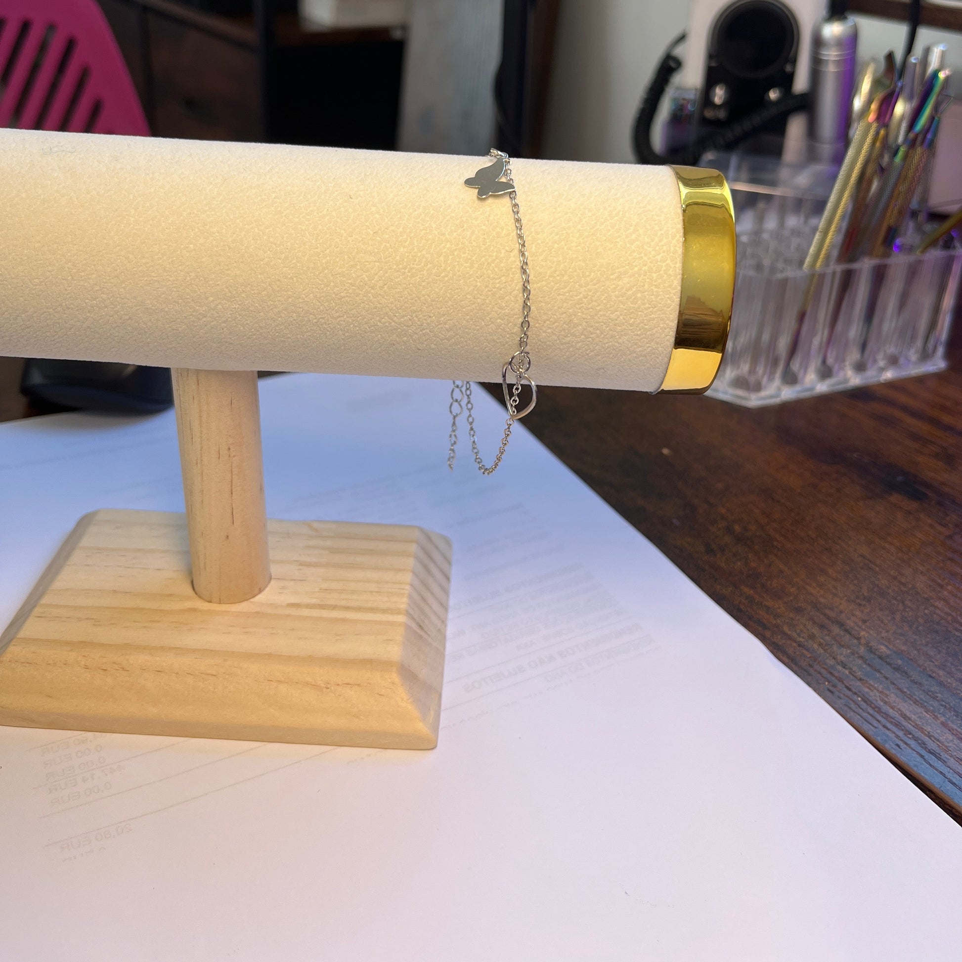 Pulseira de Senhora em Fantasia, Borboleta e Coração