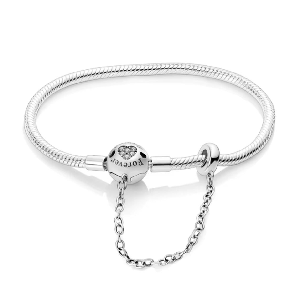 Acrescente brilho e romance às suas contas com esta versão deslumbrante da icónica pulseira malha snake Pandora. Com acabamento manual em prata 925, este estilo elegante apresenta um fecho reversível em forma de bola escrito "Family" com coração com pedras pavé brilhantes de um lado. Use esta pulseira sózinha ou com as suas contas preferidas Pandora.