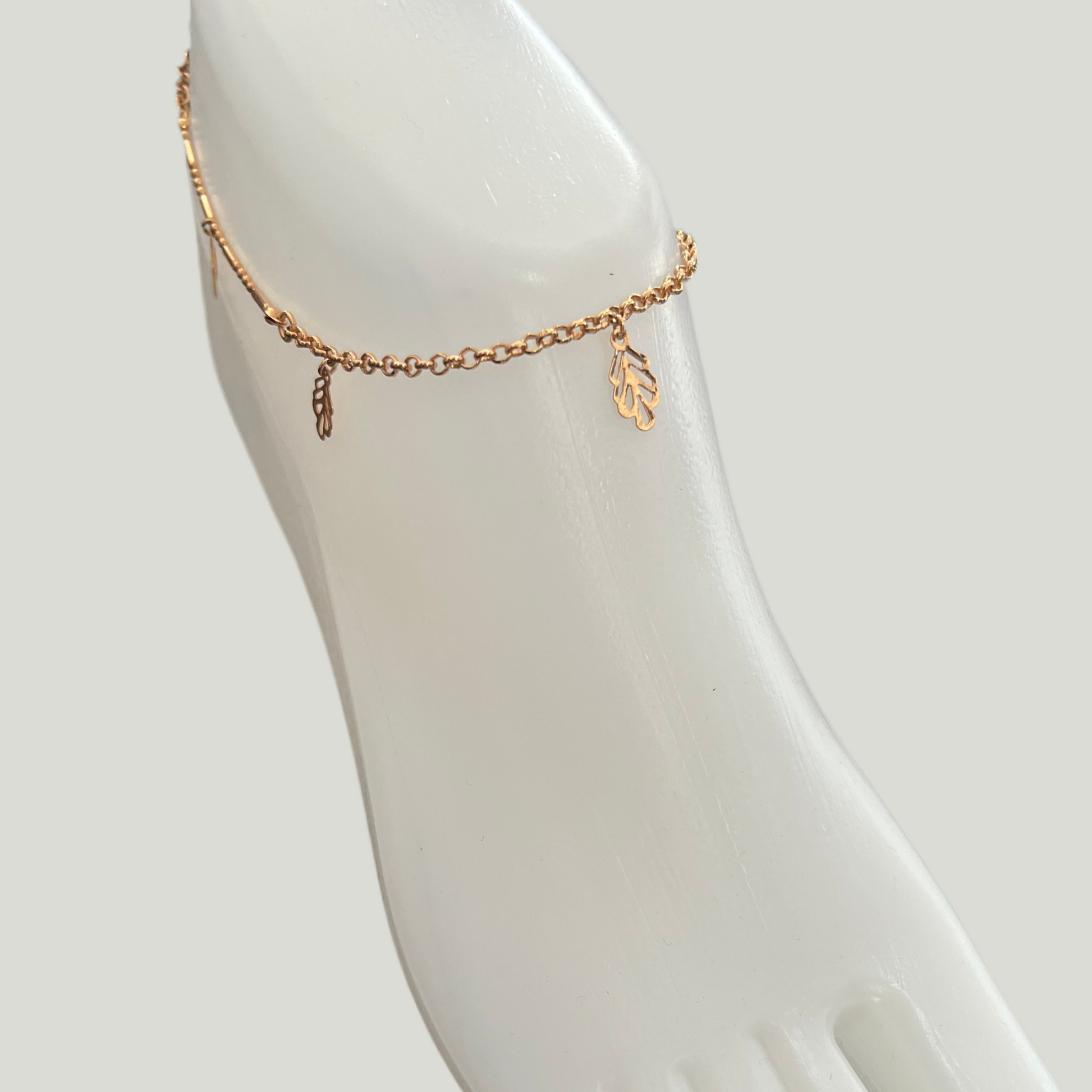 Pulseira Pé Ouro Rosa 10K, com Folhas.