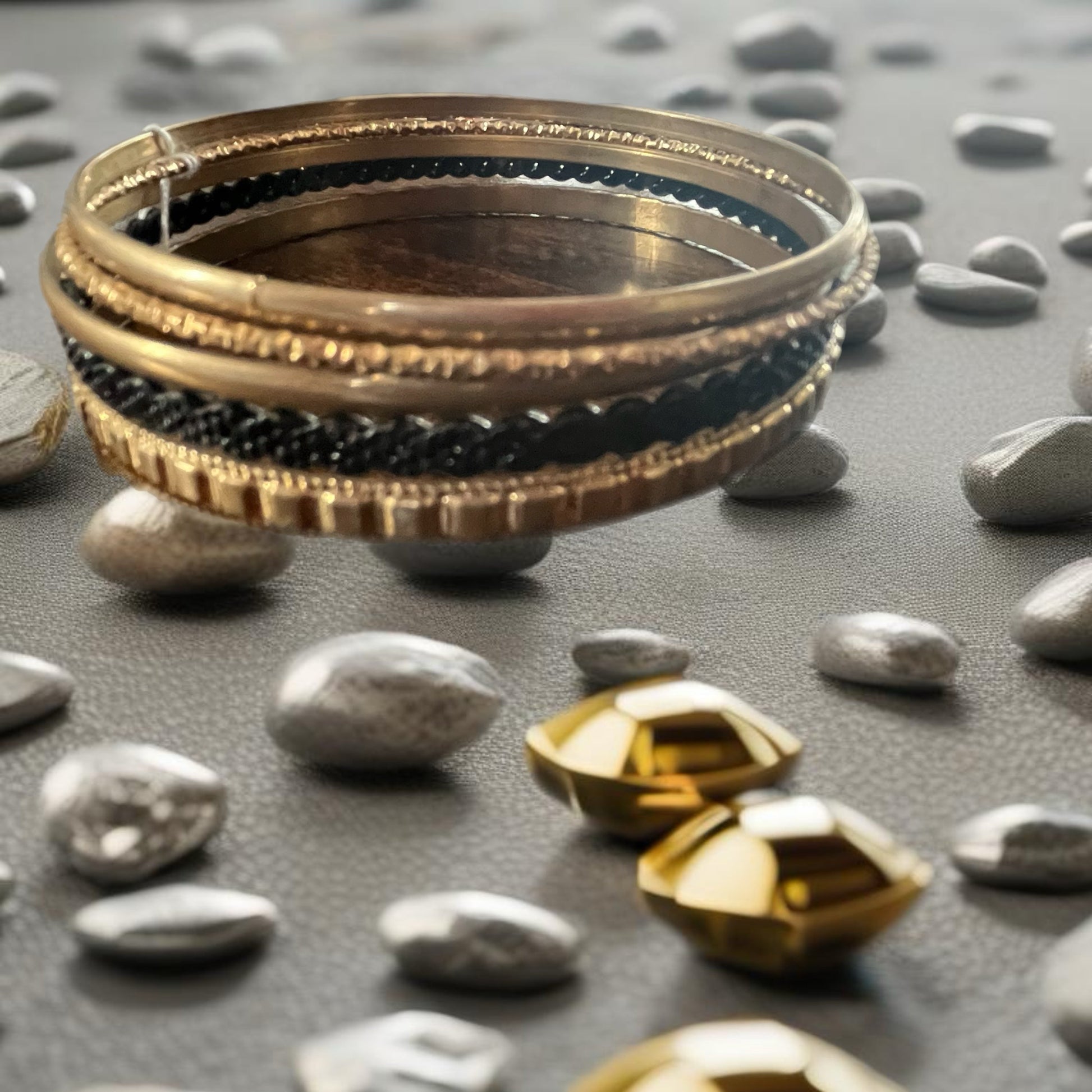 Conjunto 4 Pulseira Marroco em tons Dourados e Pretos.