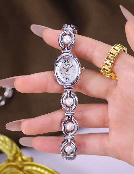 Relógio de Senhora, Gedi em Prata com Pérolas de Àgua Brancas