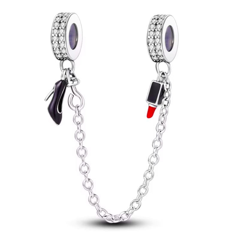 Reuniu as contas que celebram as suas memórias e marcam os seus marcos: agora mantenha-as seguras na sua pulseira Pandora Moments com esta conta corrente de segurança em prata 925. Acentuada com um sapato e um batom de Mulher para um acabamento fino, é decorativa por si só, e contém uma corrente rotativa para um estilo sem enredar.