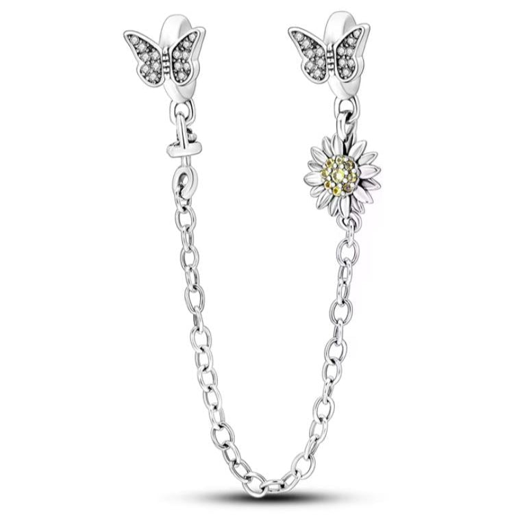 Trava-Segurança para Pulseria de Contas em Prata 925, Borboletas e Girasol